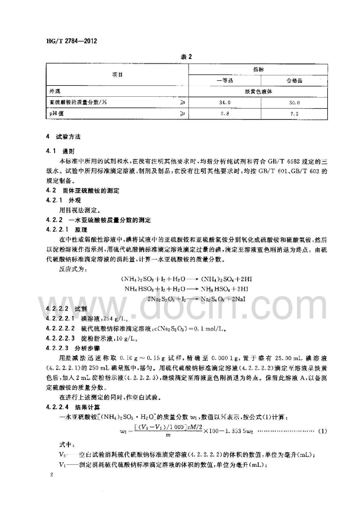 HG/T 2784-2012 代替 HG/T 2784-1996 工业用亚硫酸铵
