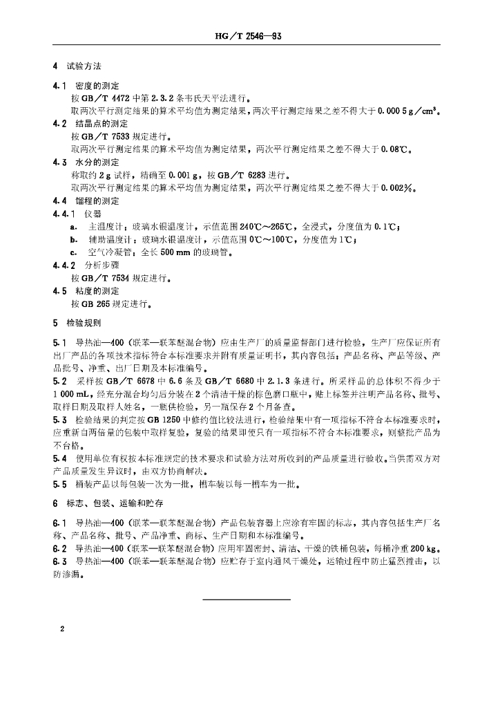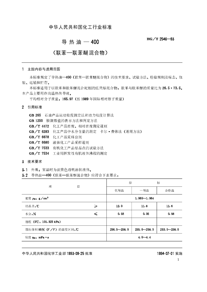 HG/T 2546-1993 导热油-400(联苯-联苯醚混合物)