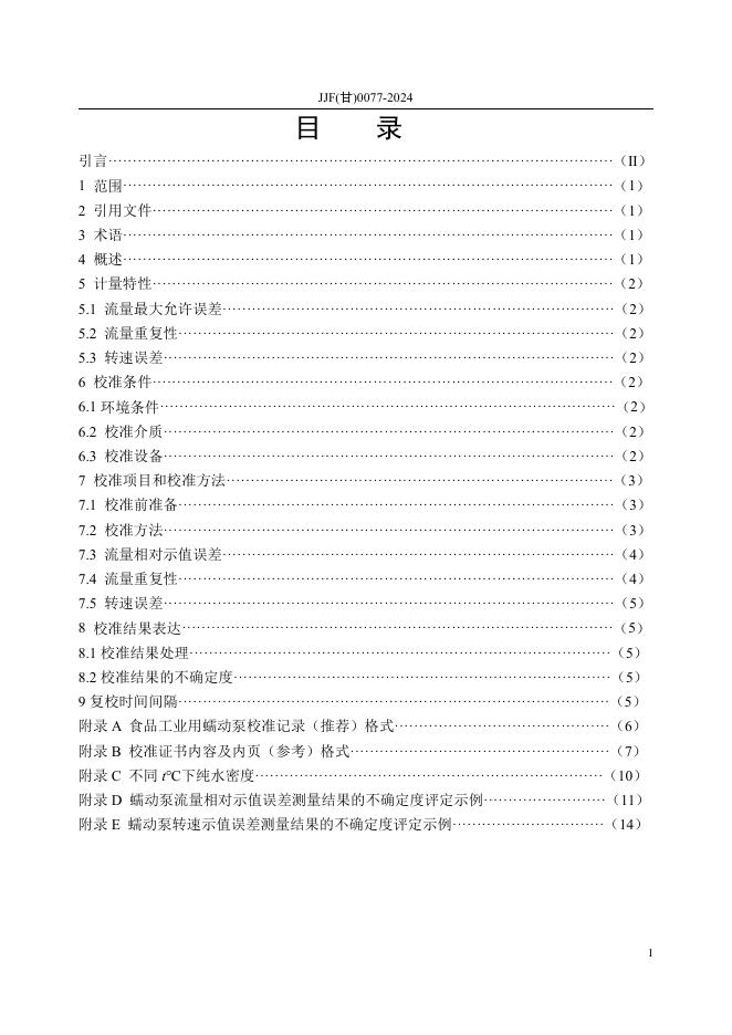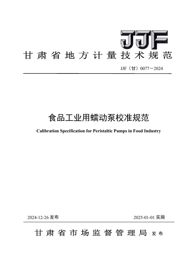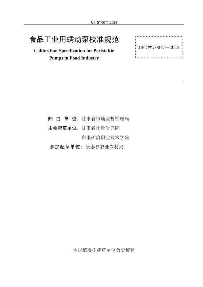 JJF(甘)0077-2024 食品工业用蠕动泵校准规范