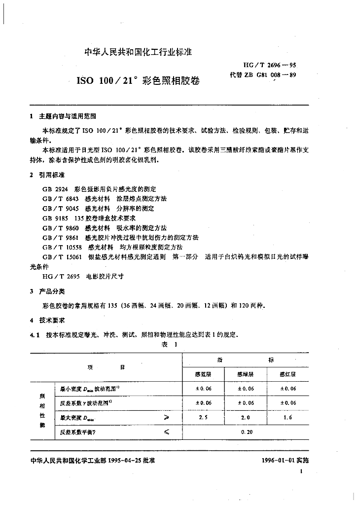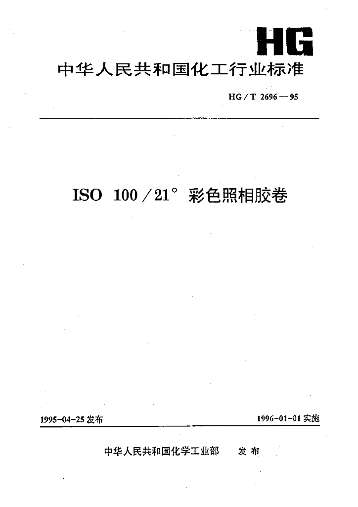 HG/T 2696-1995 ISO 100/21°彩色照相胶卷