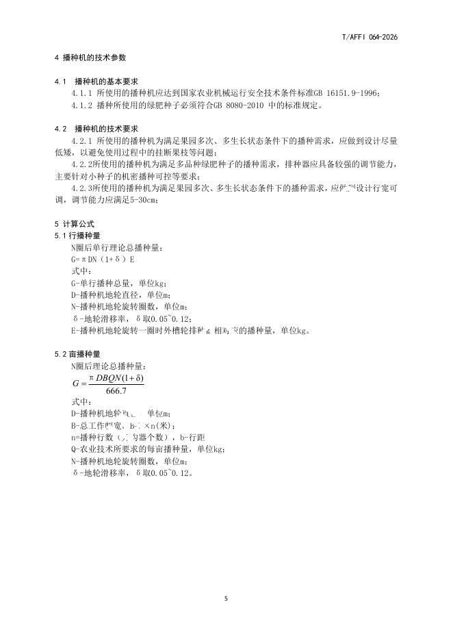 T/AFFI 064-2026 主干型果园间作绿肥条播播种机 作业技术规程