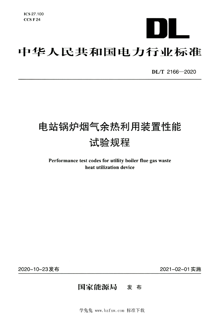 DL/T 2166-2020 电站锅炉烟气余热利用装置性能试验规程