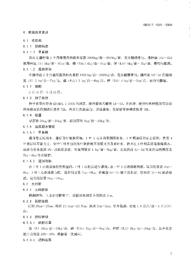 DB32/T 1525-2009 杂交籼稻新两优6380定量栽培技术规程