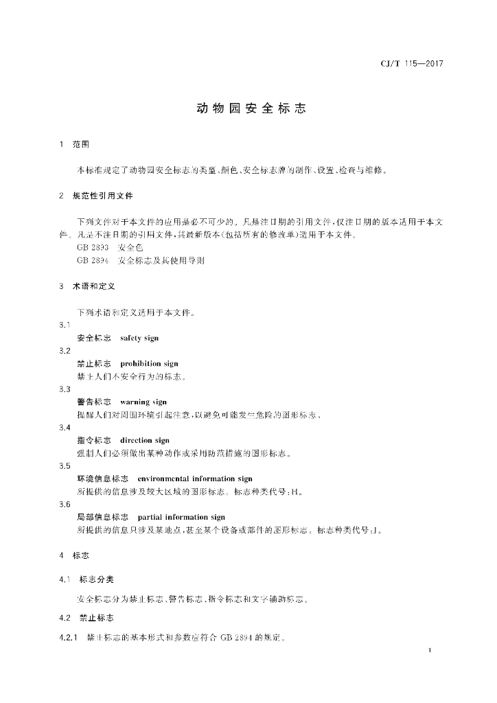 CJ/T 115-2017 动物园安全标志