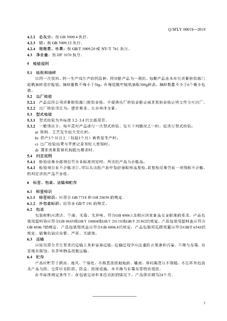Q/SFLY 0001S-2019 甜菜根袋泡茶(代用茶)