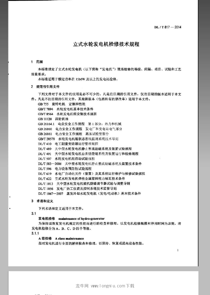 DL/T 817-2014 立式水轮发电机检修技术规程