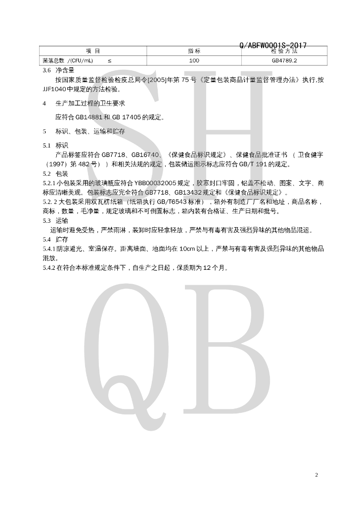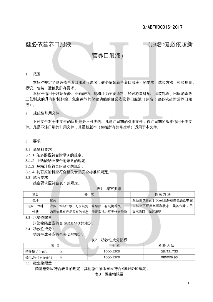 Q/ABFW 0001S-2017 健必依营养口服液 (原名:健必依超新营养口服液)