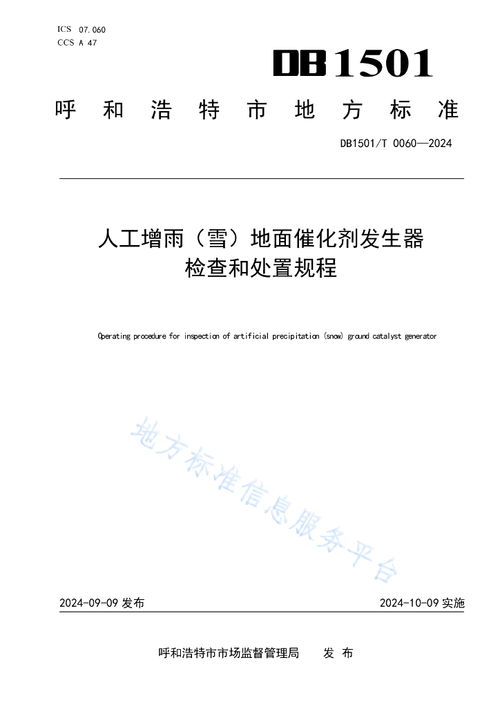DB1501/T 0060-2024 人工增雨(雪)地面催化剂发生器检查和处置规程