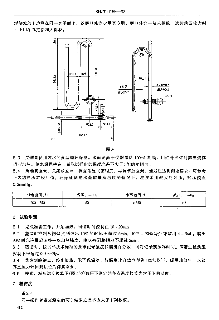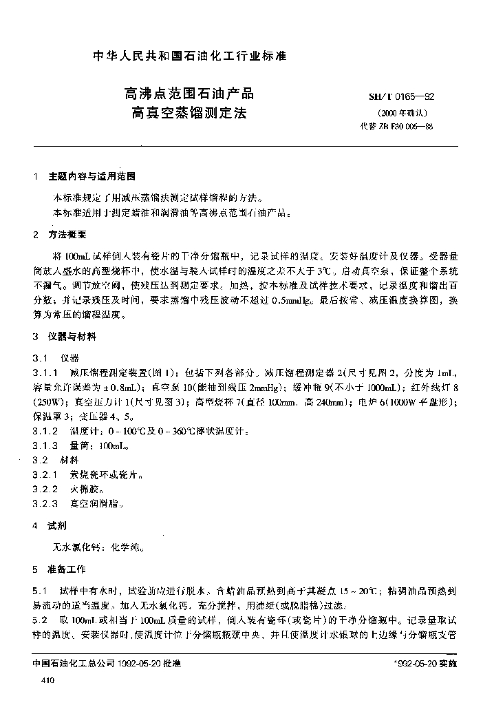SH/T 0165-1992 高沸点范围石油产品高真空蒸馏测定法