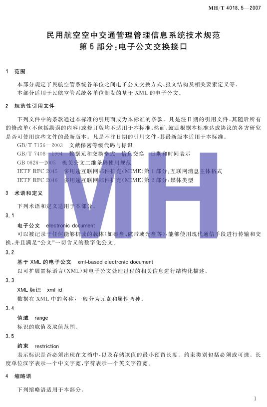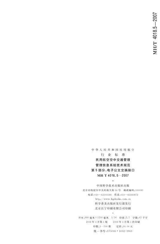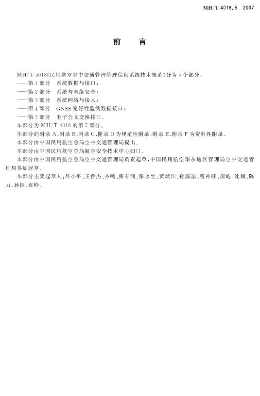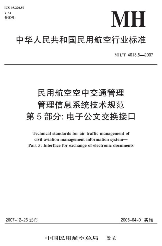 MH/T 4018.5-2007 民用航空空中交通管理 管理信息系统技术规范 第5部分:电子公文交换接口
