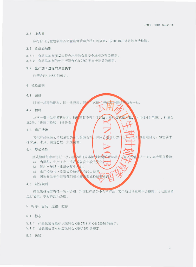 Q/MSL 0001S-2015 芒市风平镇森林食品厂 火烧干巴