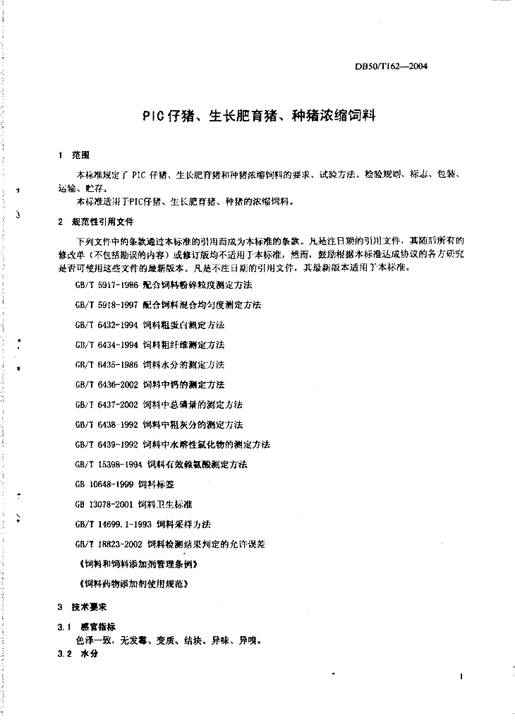 DB50/T 162-2004 PIC仔猪、生长肥育猪、种猪浓缩饲料