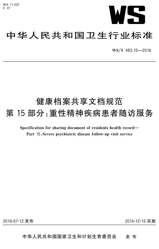 WS/T 483.15-2016 健康档案共享文档规范 第15部分:重性精神疾病患者随访服务