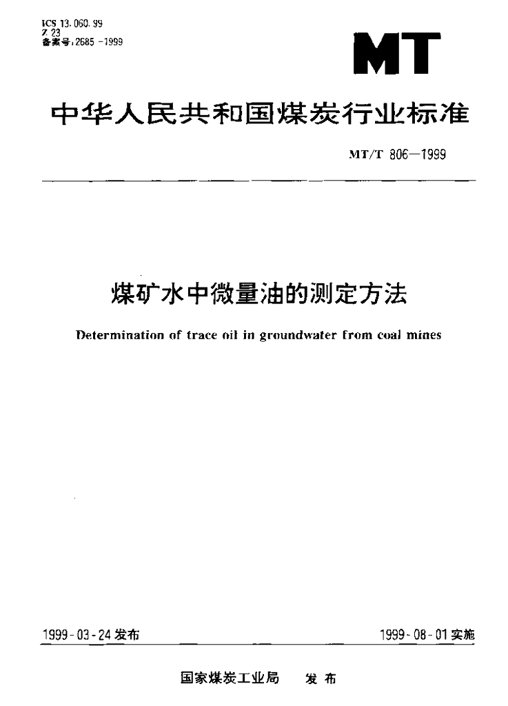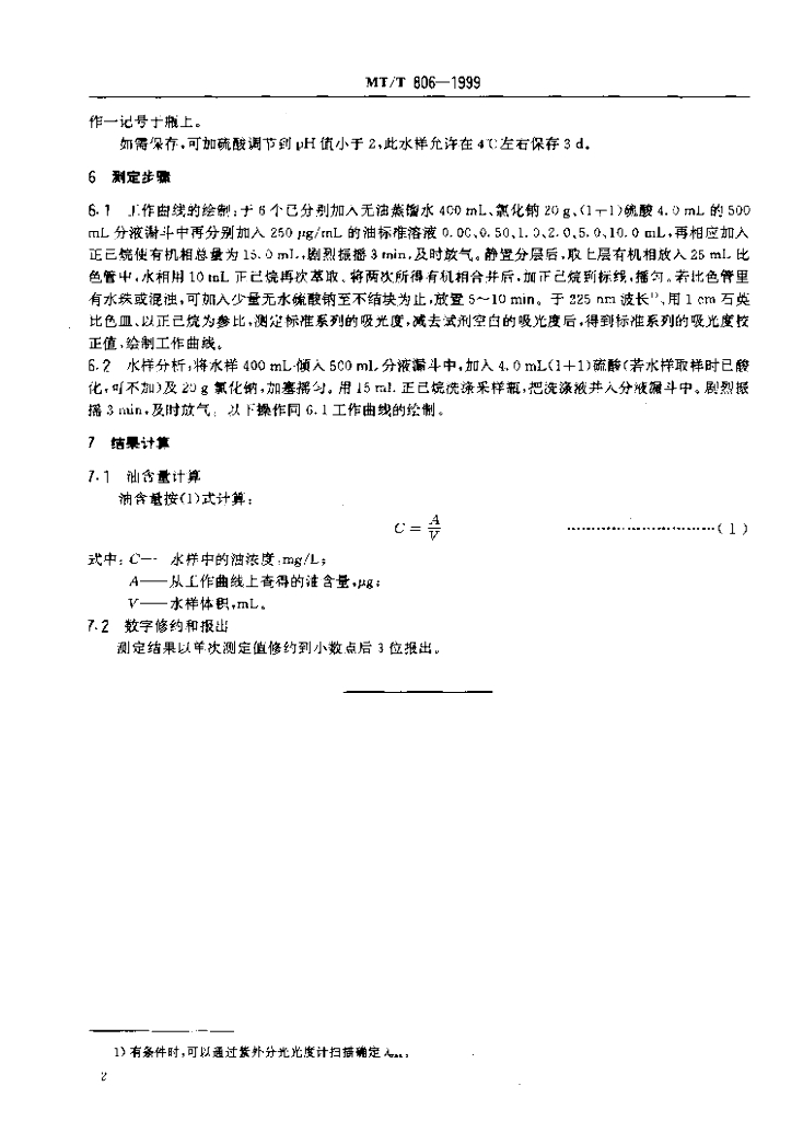 MT/T 806-1999 煤矿水中微量油的测定方法