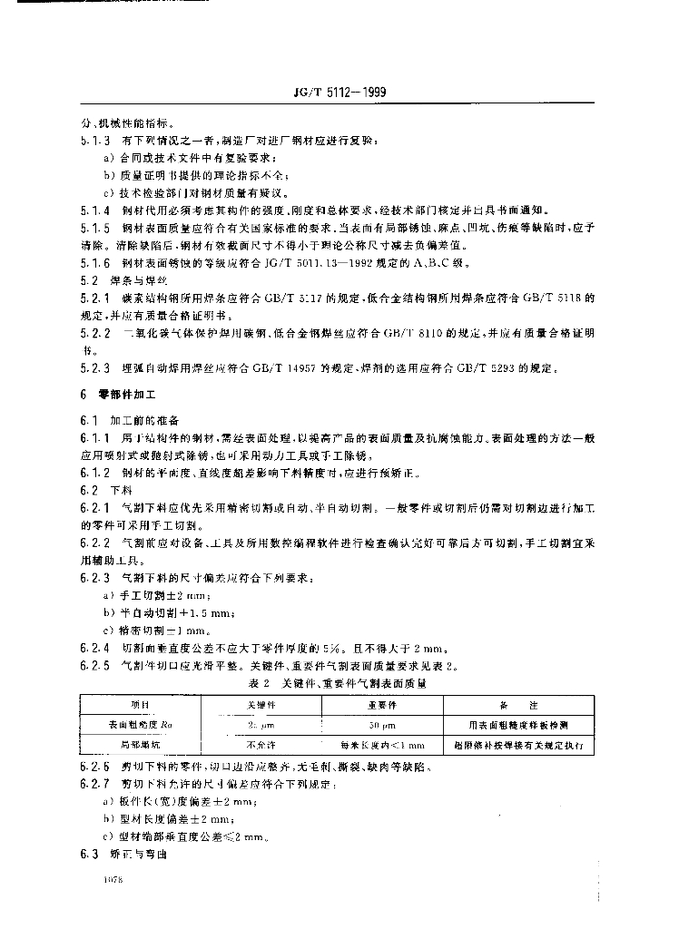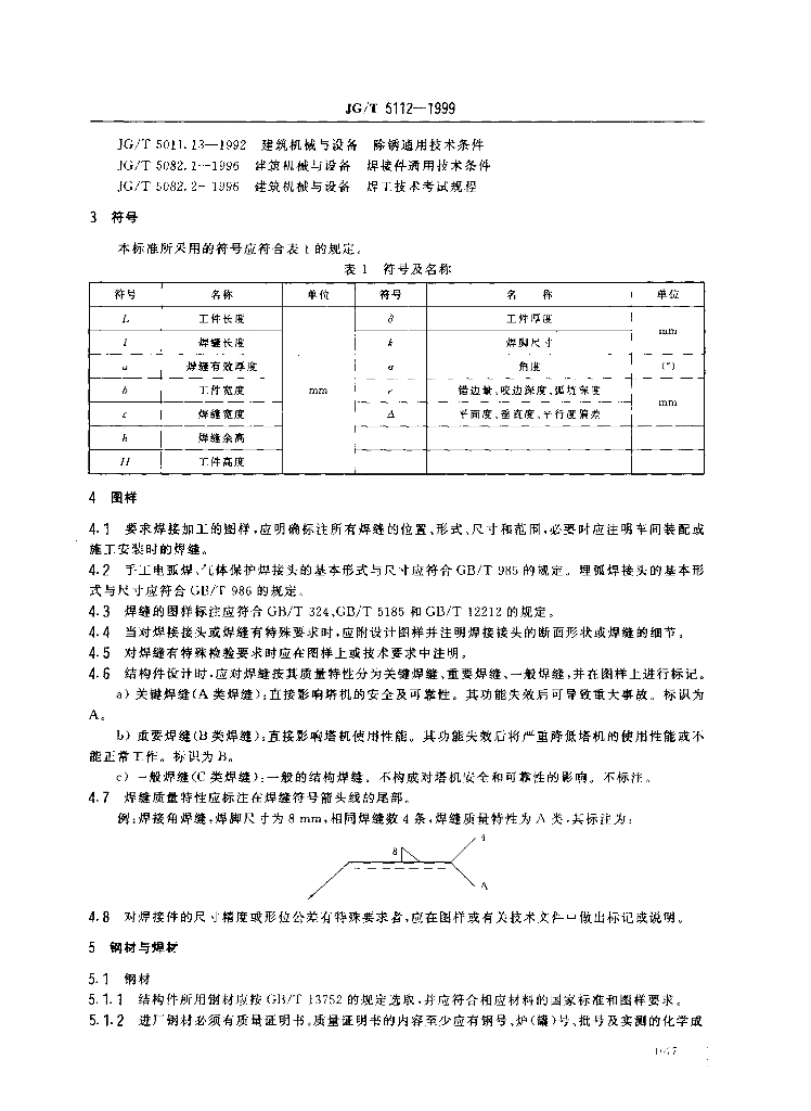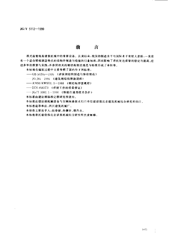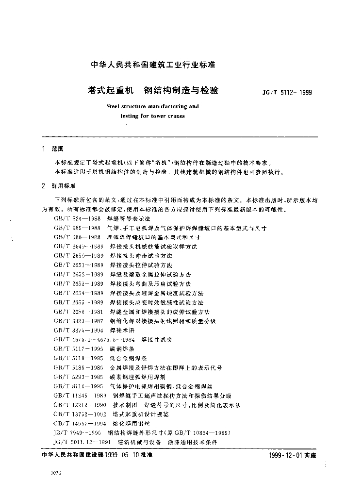 JG/T 5112-1999 塔式起重机 钢结构制造与检验
