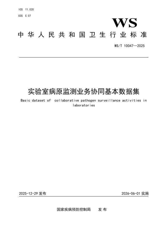 WS/T 10047-2025 实验室病原监测业务协同基本数据集