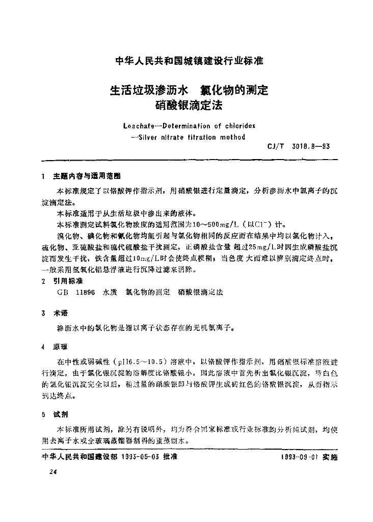 CJ/T 3018.8-1993 生活垃圾渗沥水 氯化物的测定 硝酸银滴定法