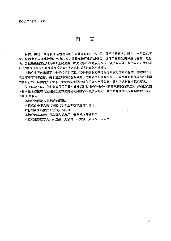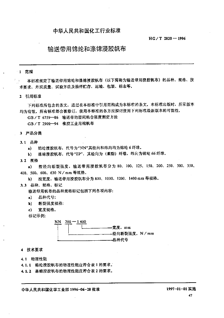 HG/T 2820-1996 输送带用锦纶和涤锦浸胶帆布