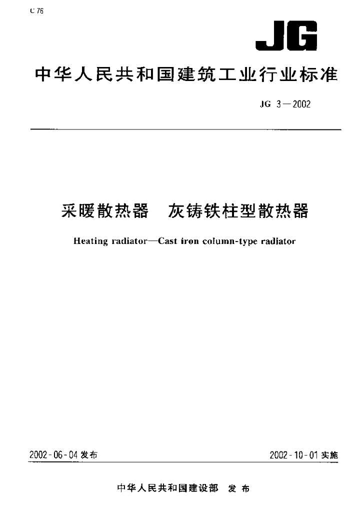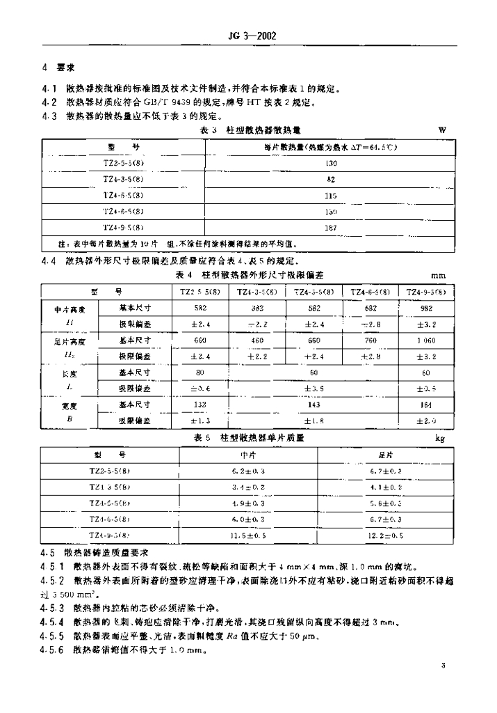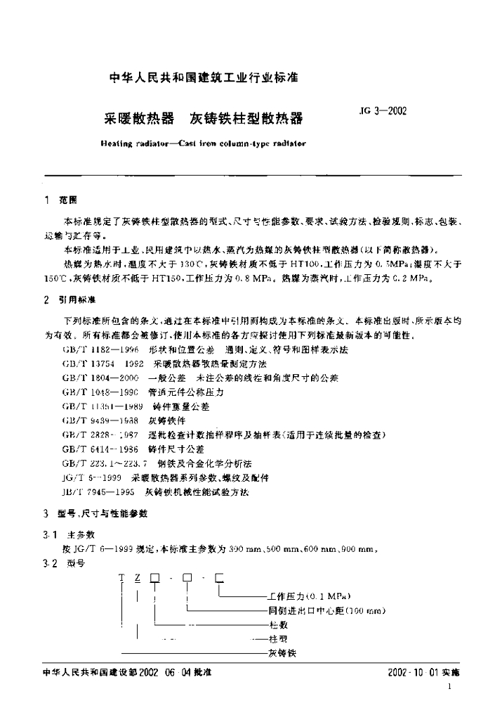 JG 3-2002 采暖散热器 灰铸铁柱型散热器