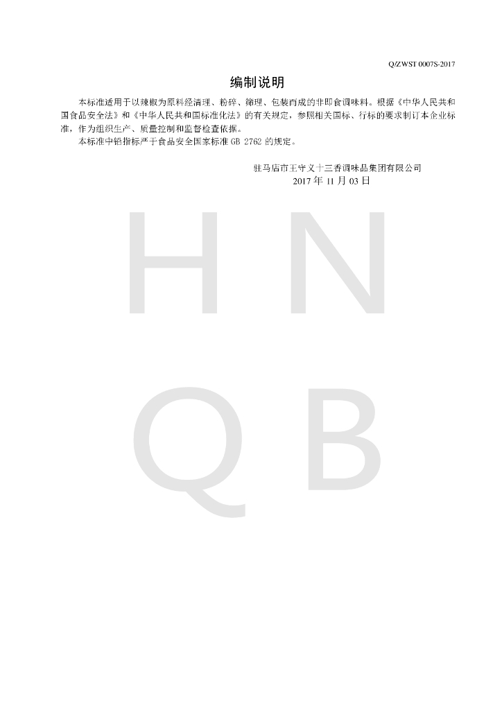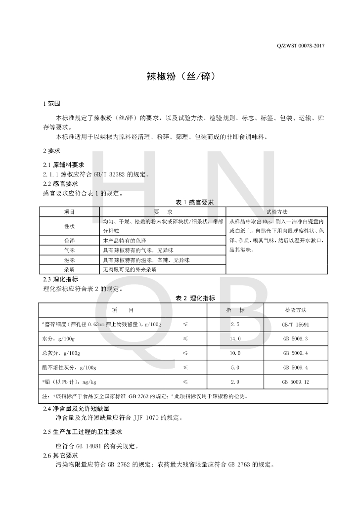 Q/ZWST 0007S-2017 辣椒粉(丝/碎)