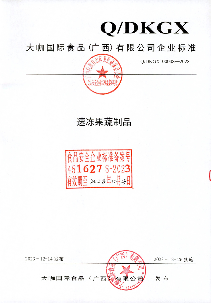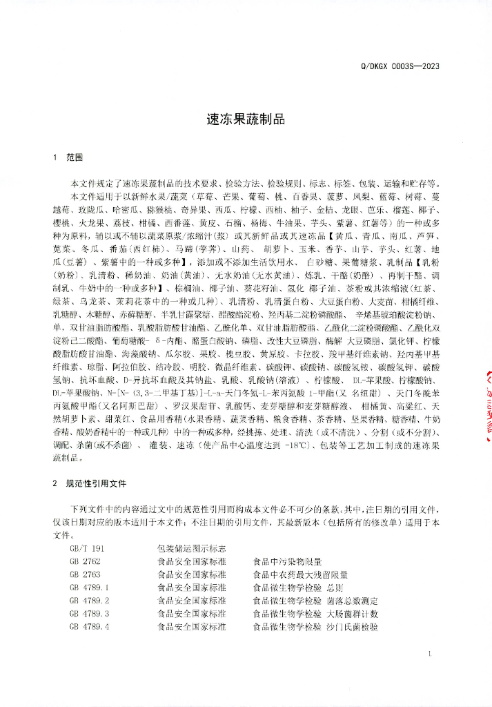 Q/DKGX 0003S-2023 速冻果蔬制品