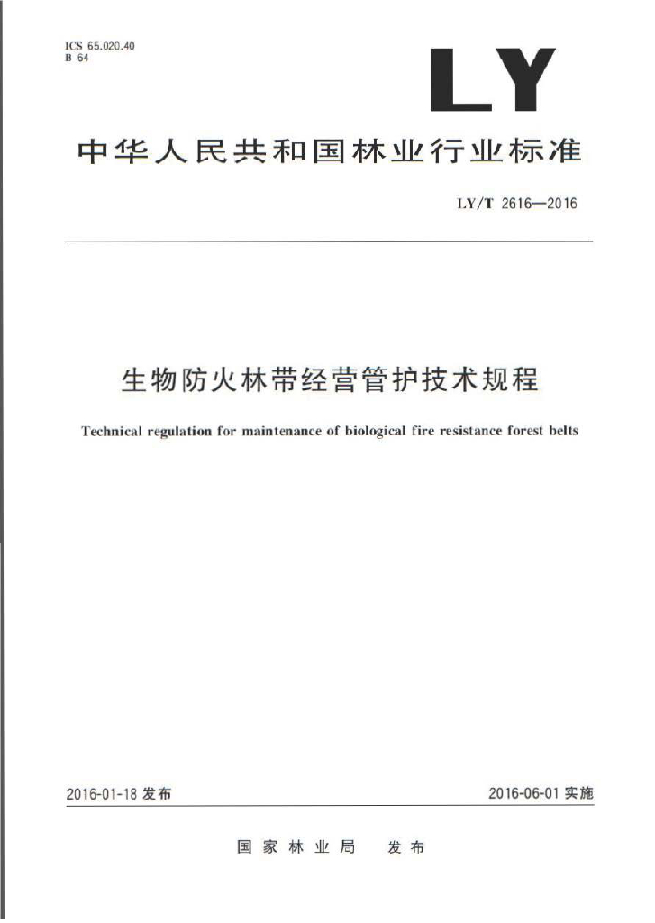 LY/T 2616-2016 生物防火林带经营管护技术规程