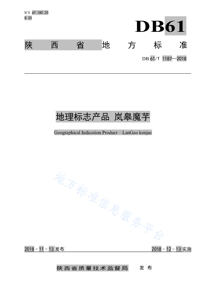 DB61/T 1187-2018 地理标志产品 岚皋魔芋