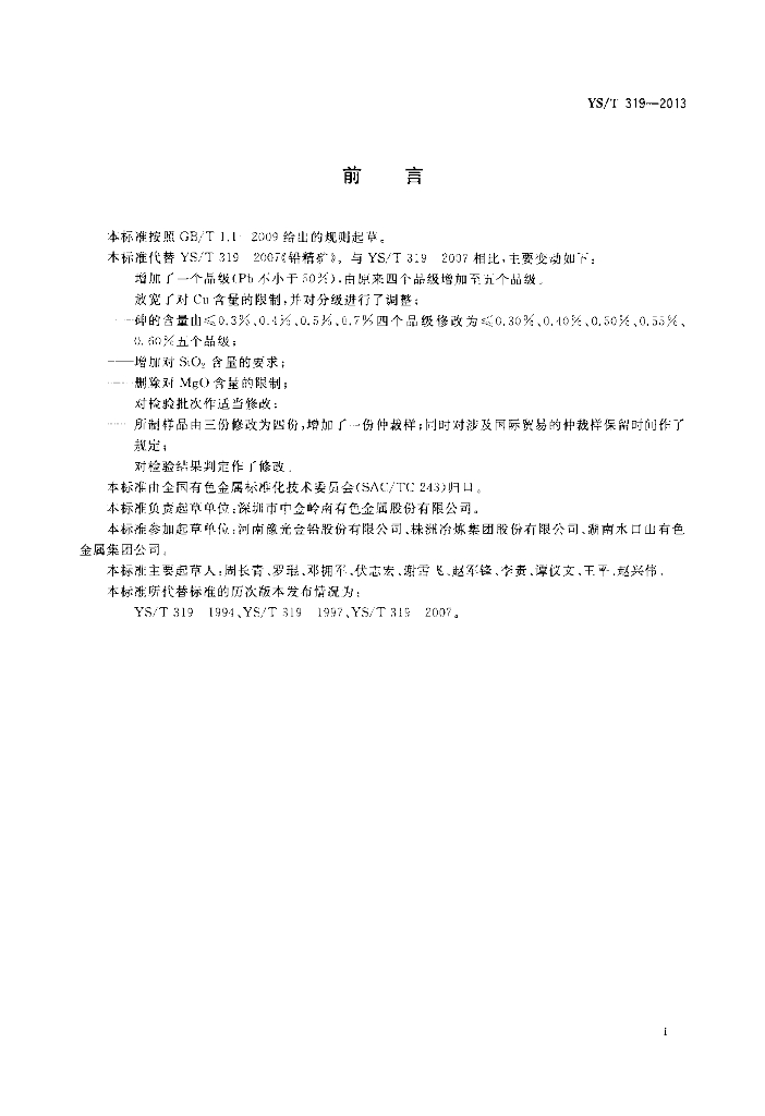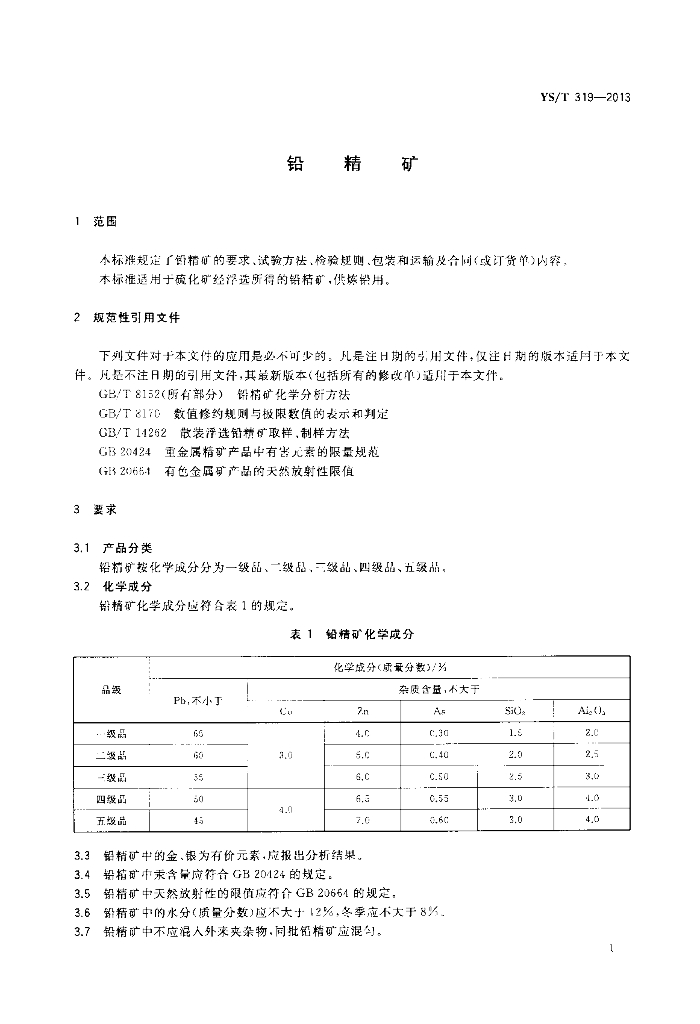 YS/T 319-2013 铅精矿