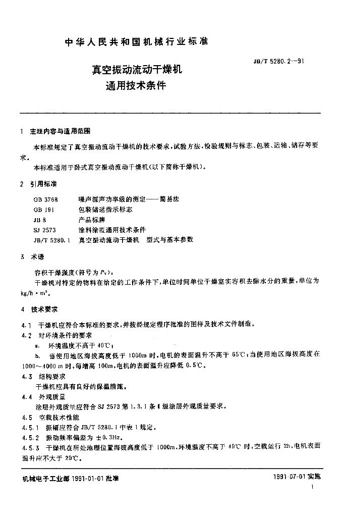 JB/T 5280.2-1991 真空振动流动干燥机 通用技术