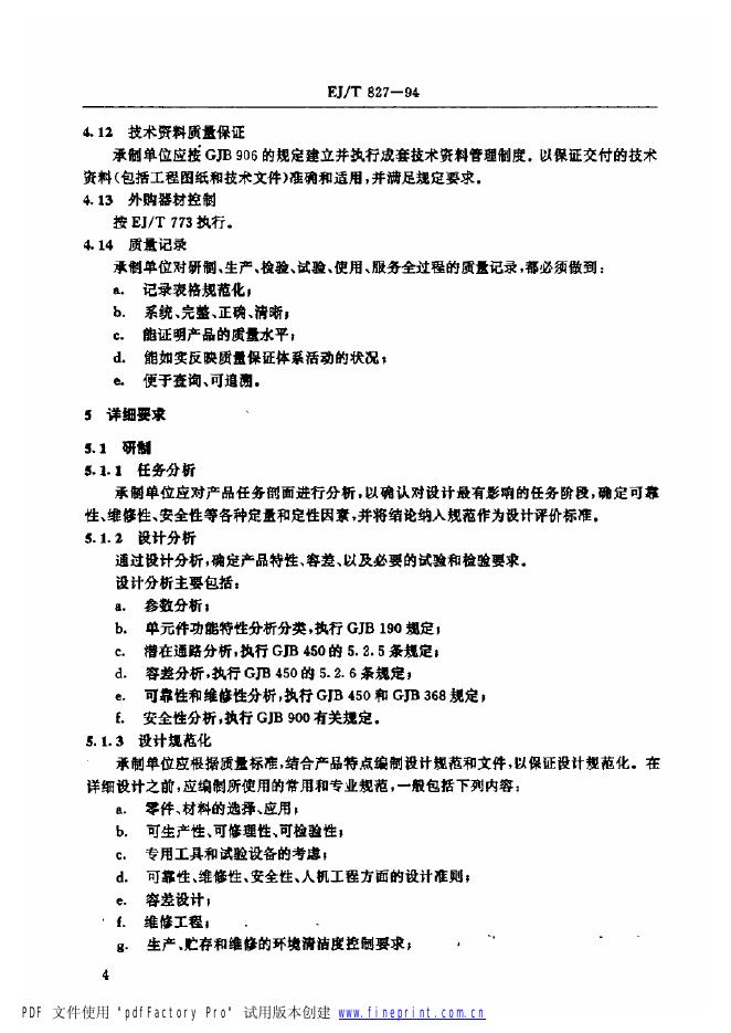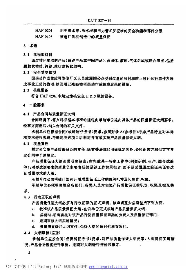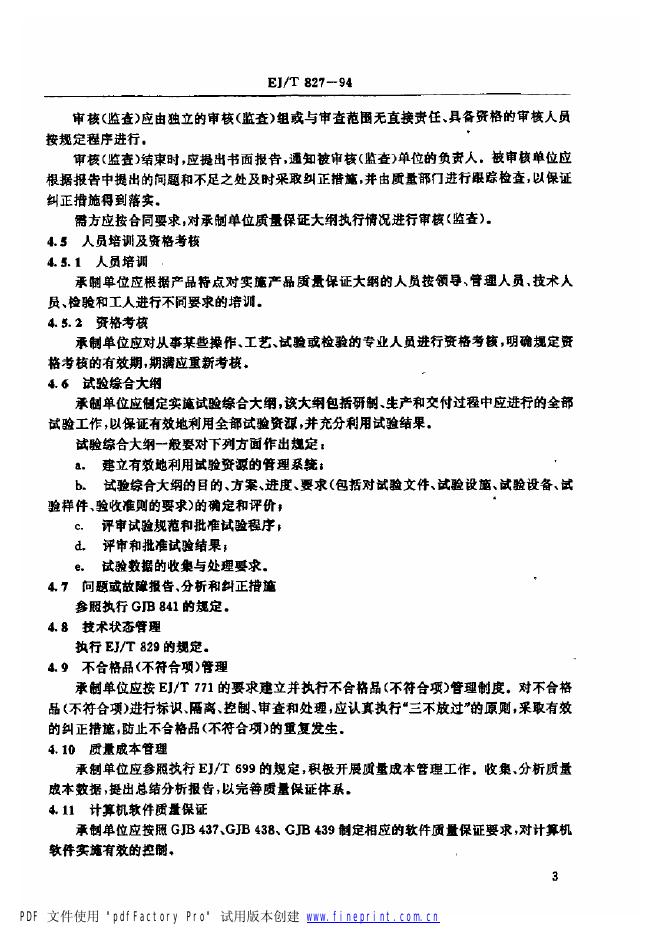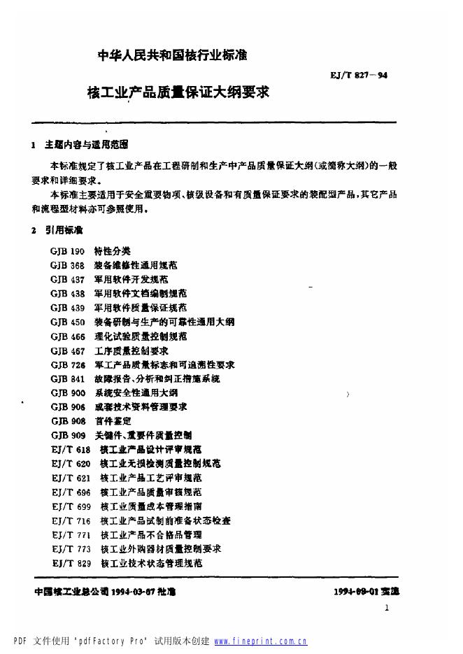 EJ/T 827-1994 核工业产品质量保证大纲要求