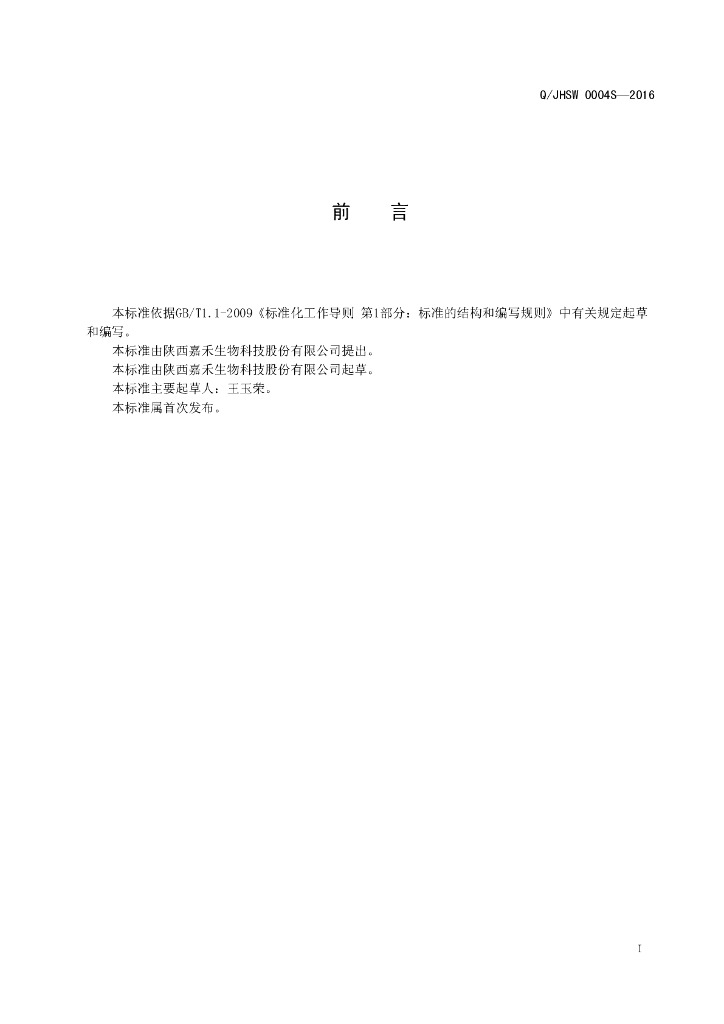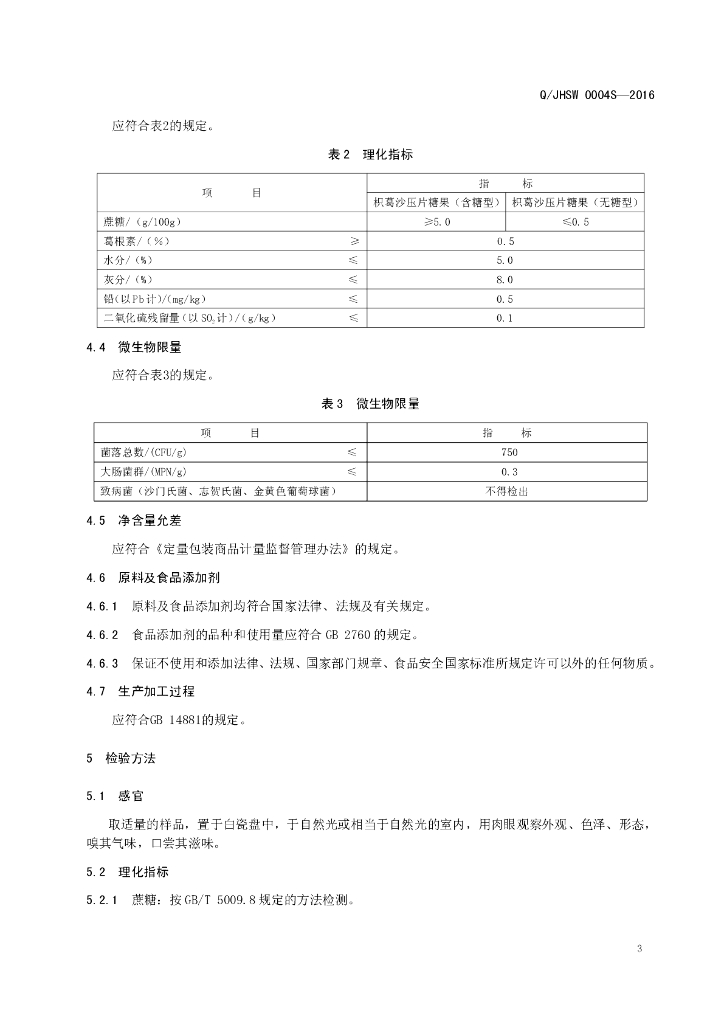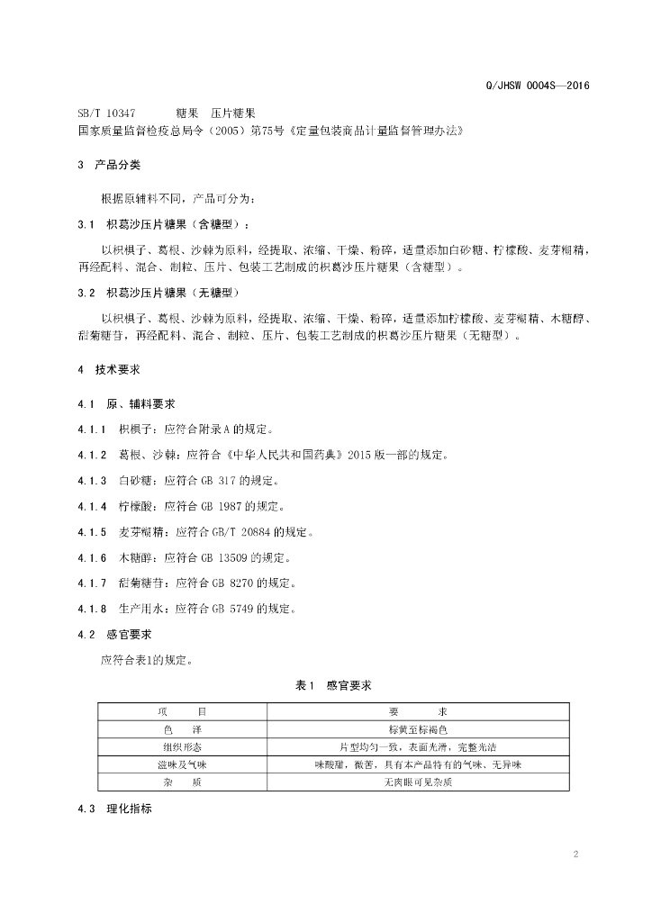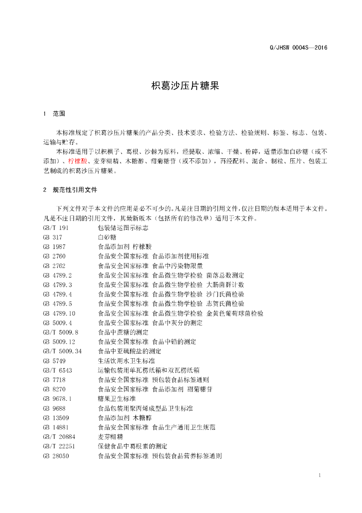 Q/JHSW 0004S-2016 陕西嘉禾生物科技股份有限公司 枳葛沙压片糖果