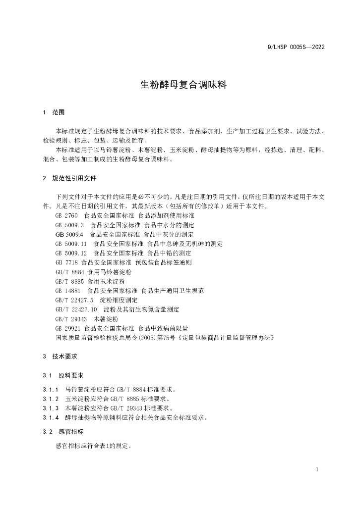 Q/LHSP 0005S-2022 生粉酵母复合调味料