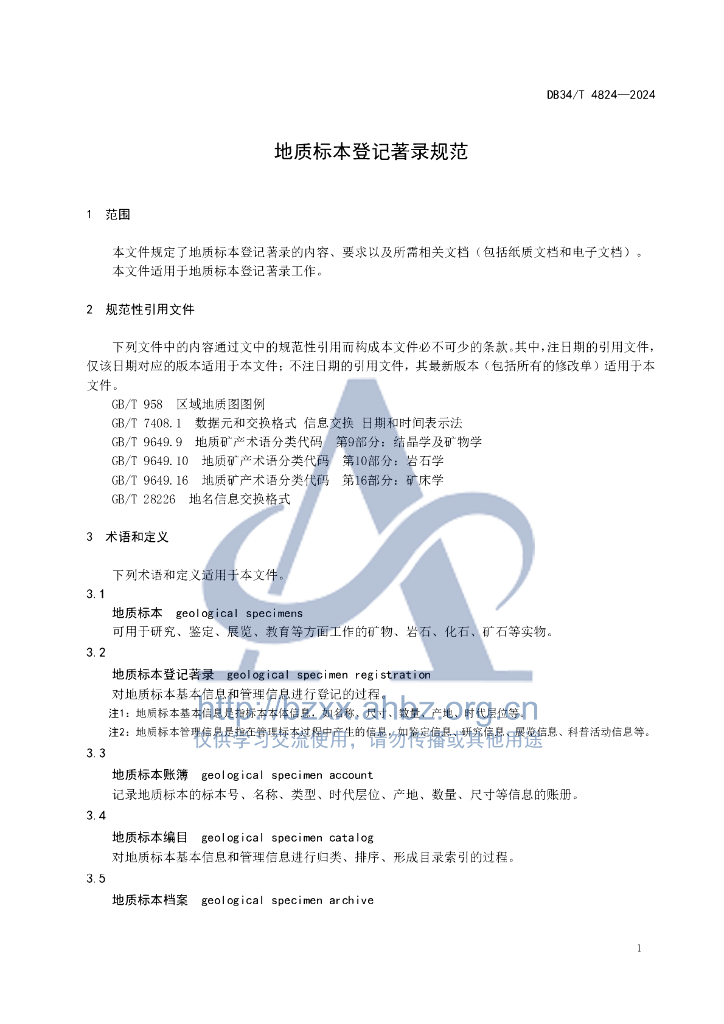 DB34/T 4824-2024 地质标本登记著录规范
