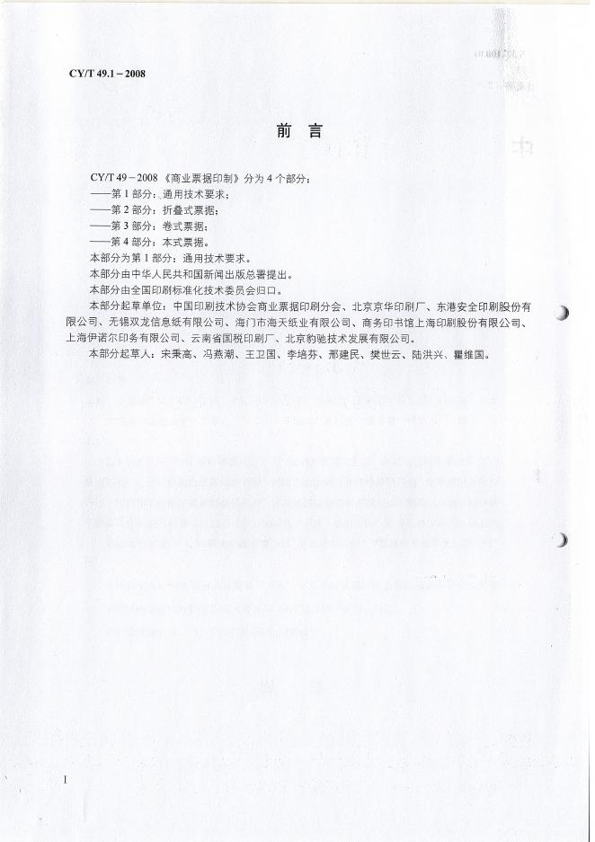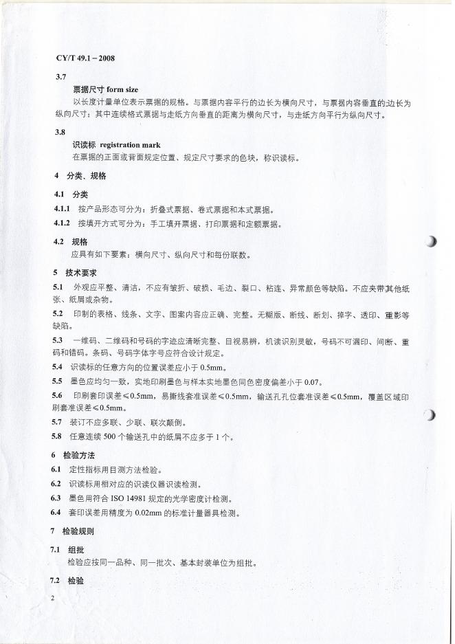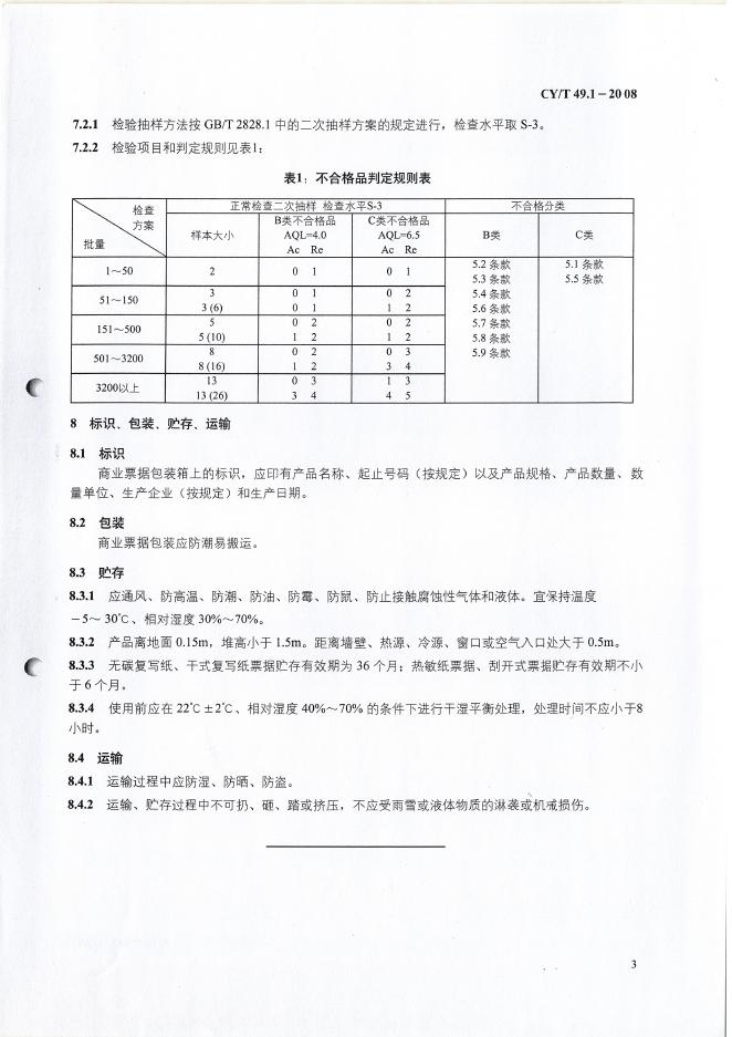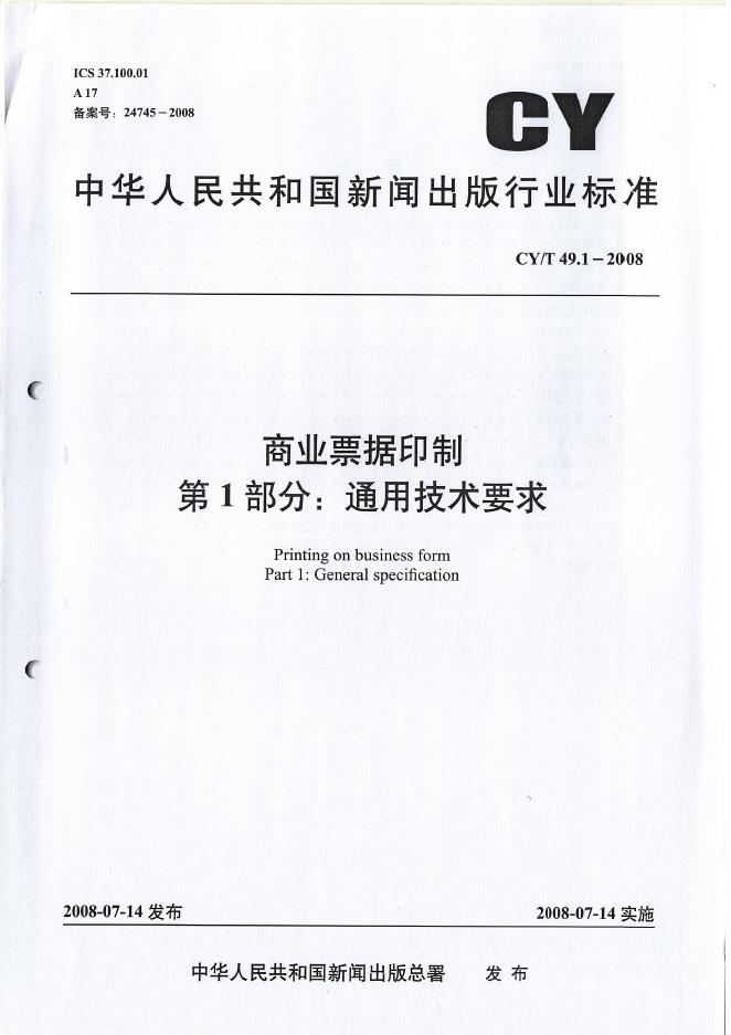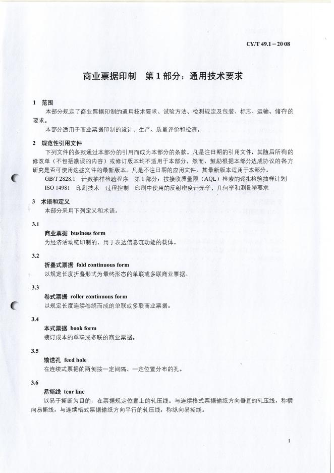 CY/T 49.1-2008 商业票据印制 第1部分:通用技术要求