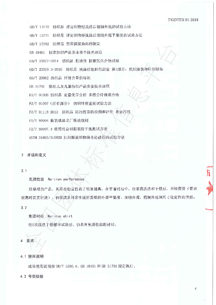 T/GDTEX 01-2018 纤维素纤维及其混纺交织机织免烫衬衫