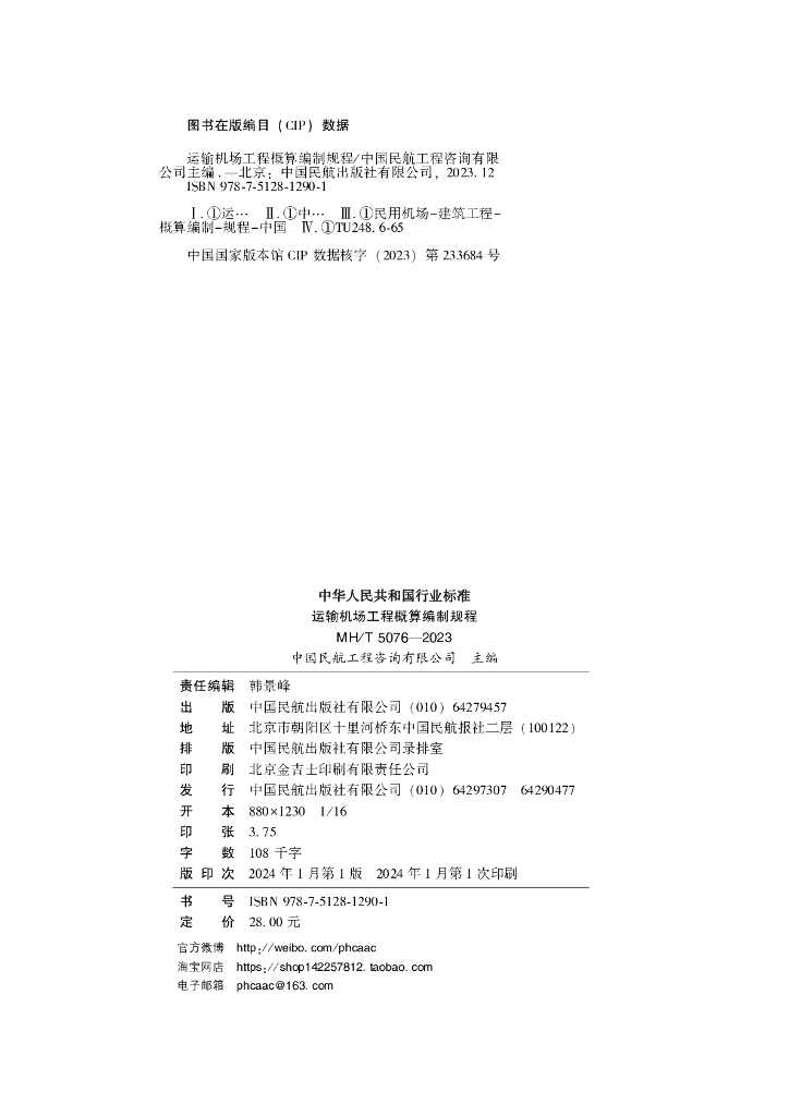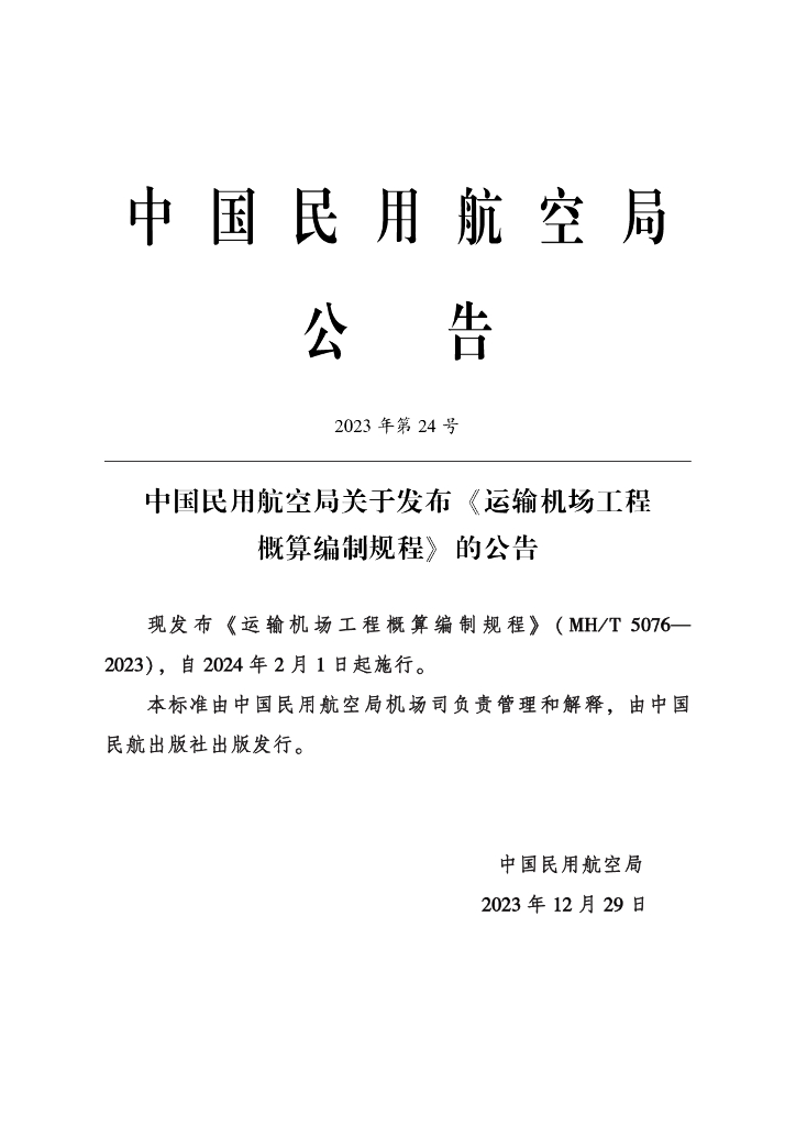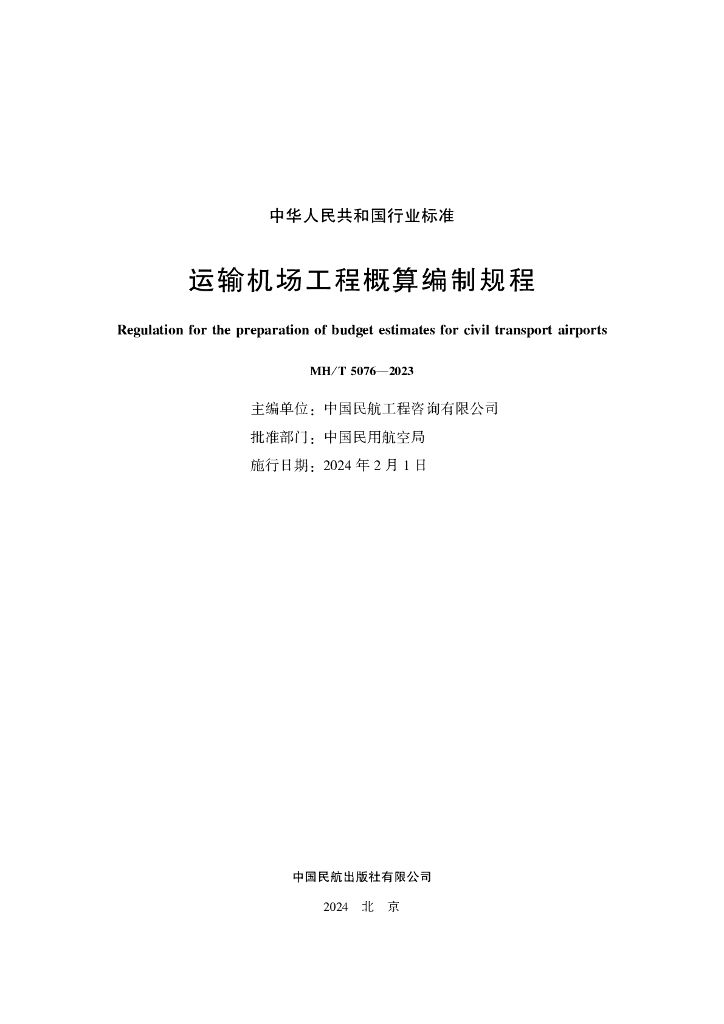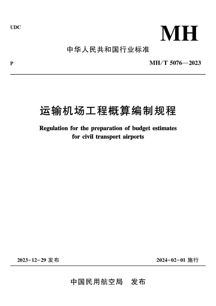 MH/T 5076-2023 运输机场工程概算编制规程