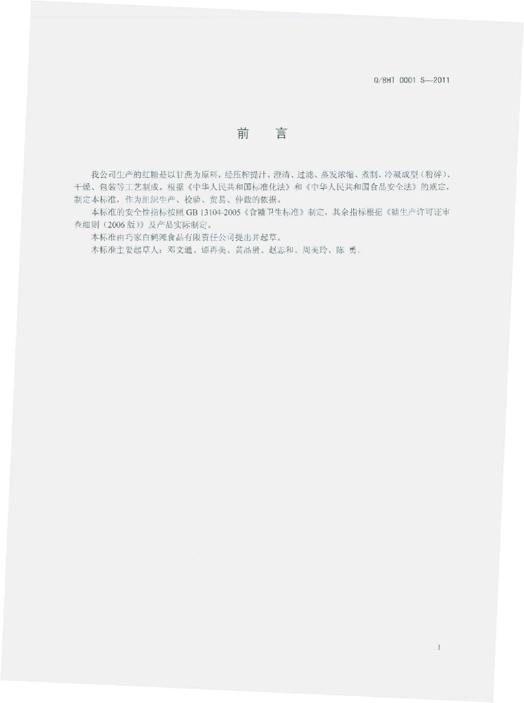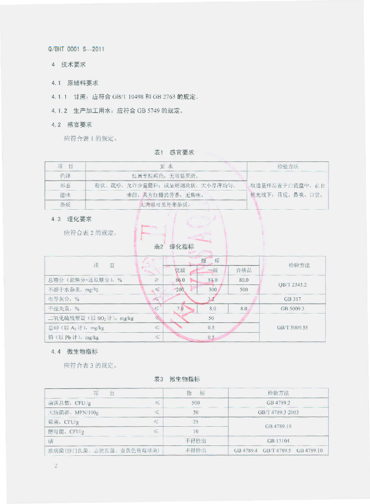 Q/BHT 0001S-2011 红糖