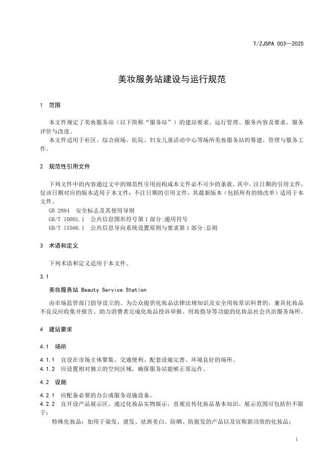 T/ZJSPA 003-2025 美妆服务站建设与运行规范