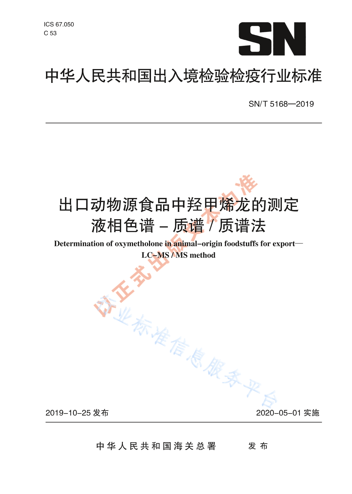 SN/T 5168-2019 出口动物源食品中羟甲烯龙的测定 液相色谱-质谱/质谱法