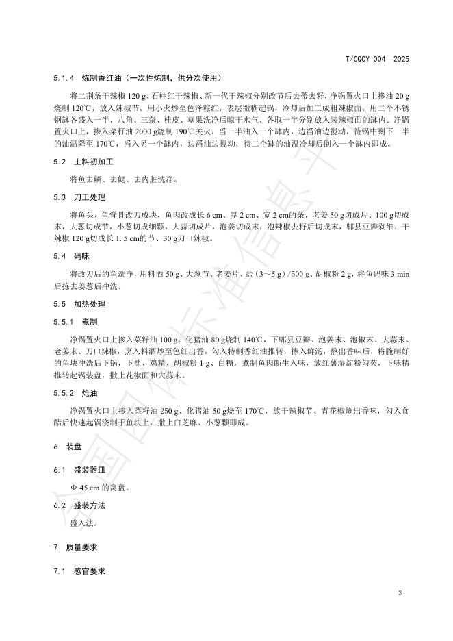 T/CQCY 004-2025 渝菜璧山来凤鱼烹饪技术规范