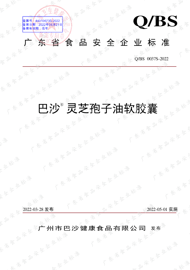 Q/BS 0037S-2022 巴沙®灵芝孢子油软胶囊