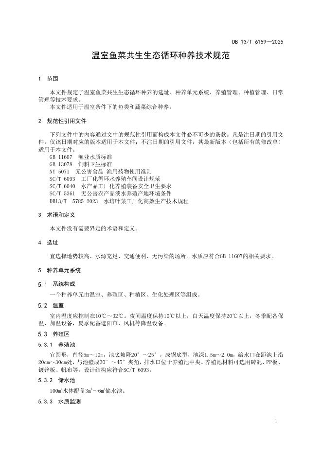 DB13/T 6159-2025 温室鱼菜共生生态循环种养技术规范