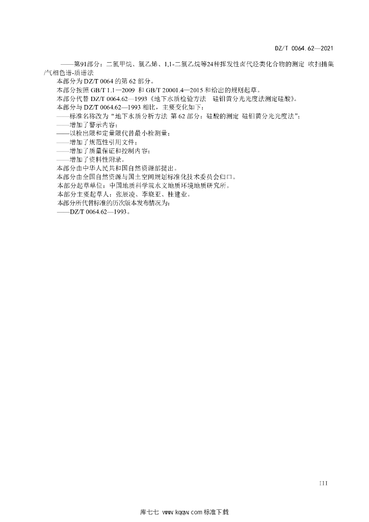 DZ/T 0064.62-2021 地下水质分析方法 第62部分:硅酸的测定硅钼黄分光光度法