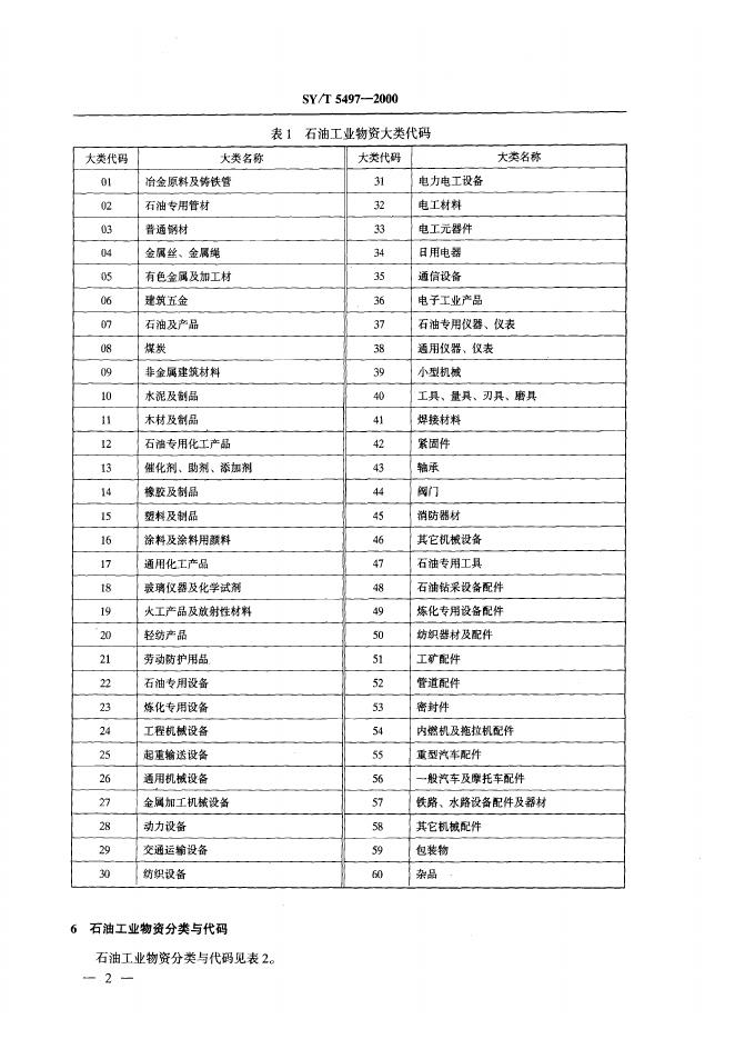 SY 5497-1992 石油工业物资统一分类编码体系石油工业物资分类与代码