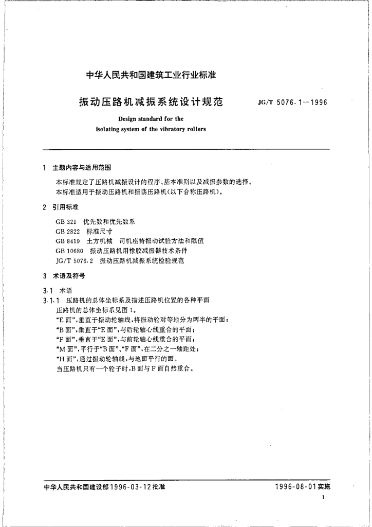 JG/T 5076.1-1996 振动压路机减振系统设计规范