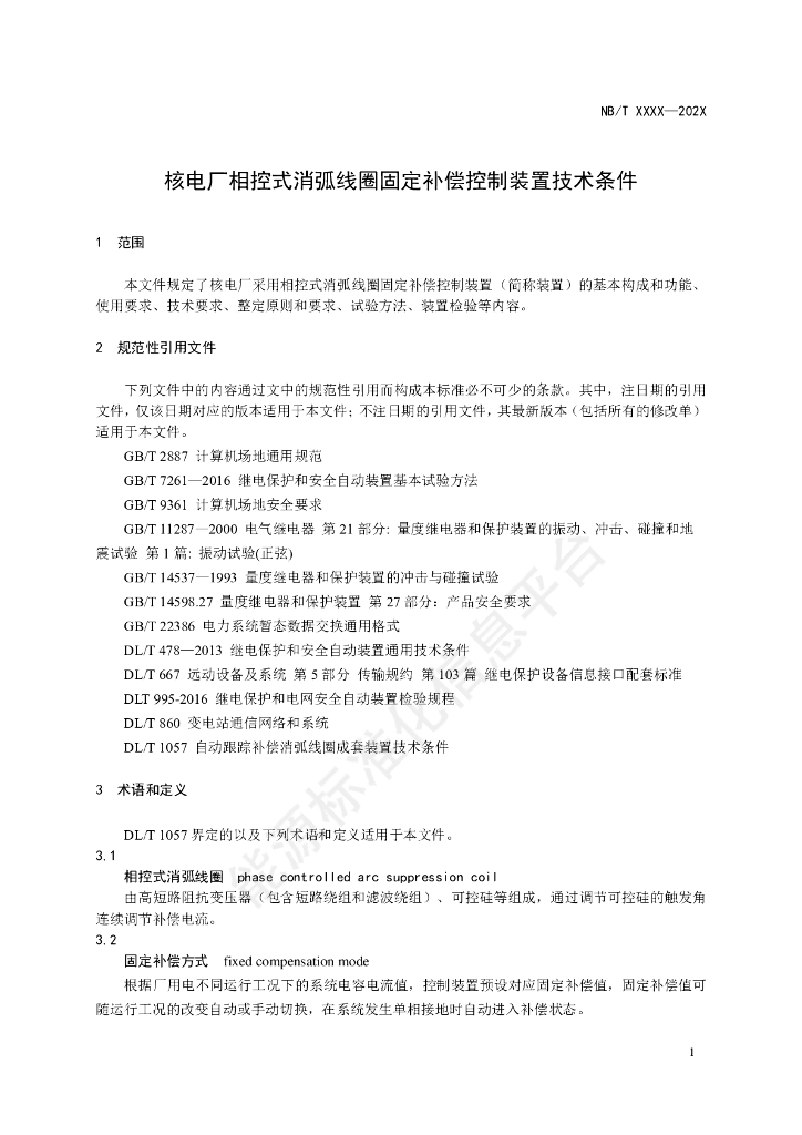 NB/T 11583-2024 核电厂相控式消弧线圈固定补偿控制装置技术条件