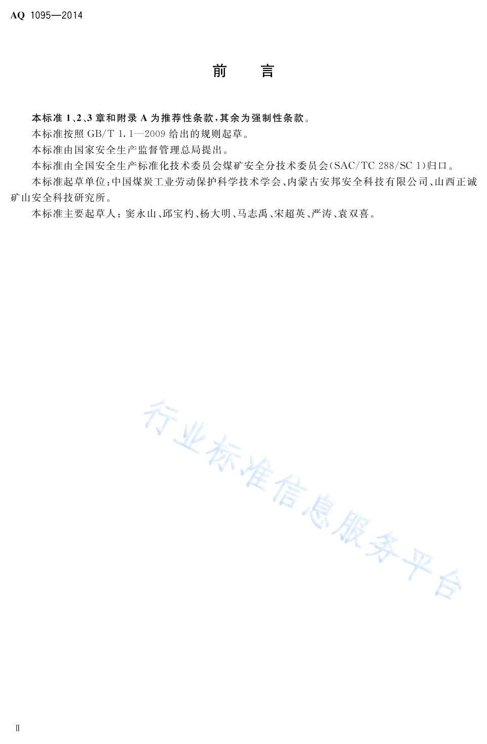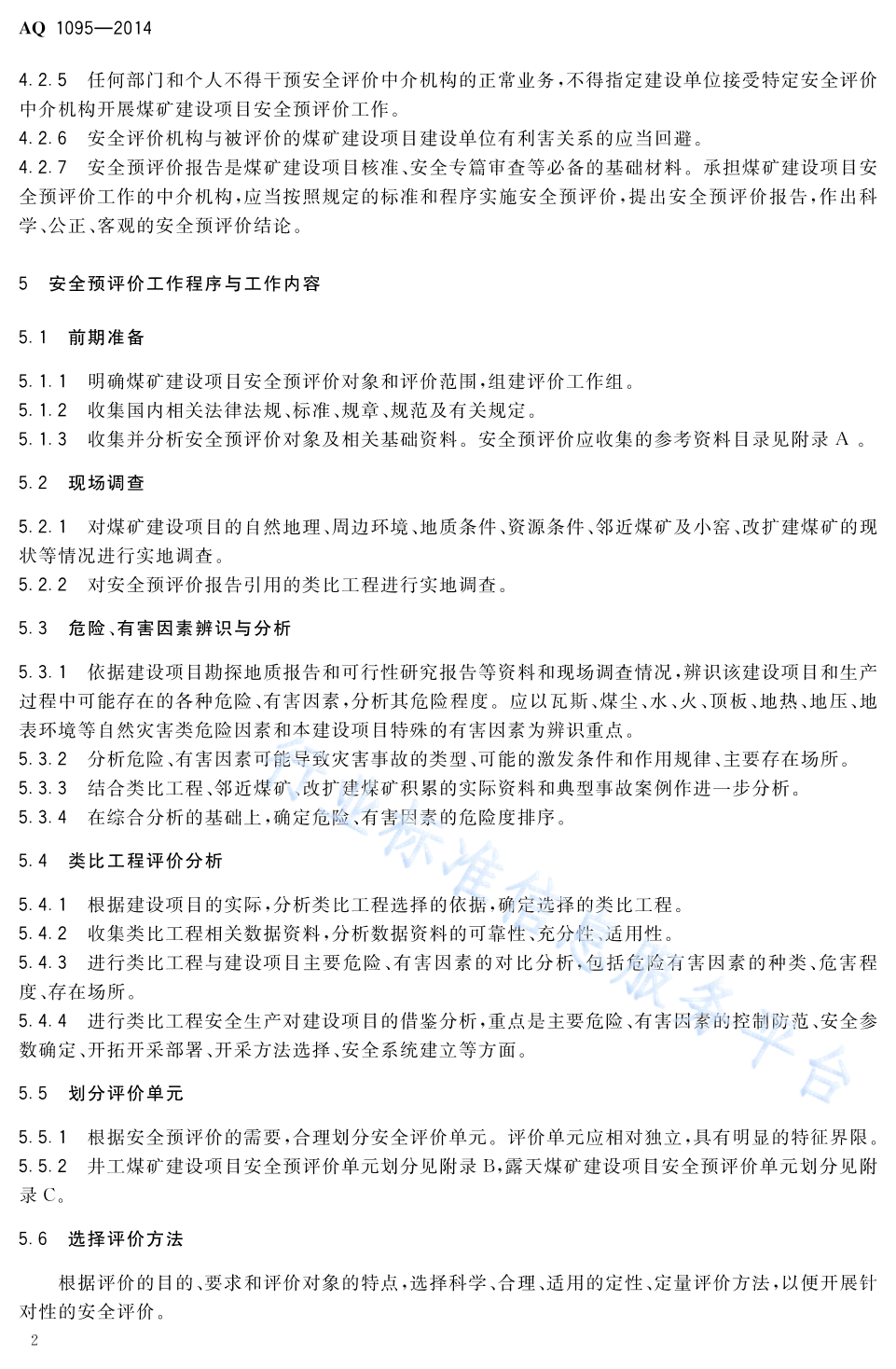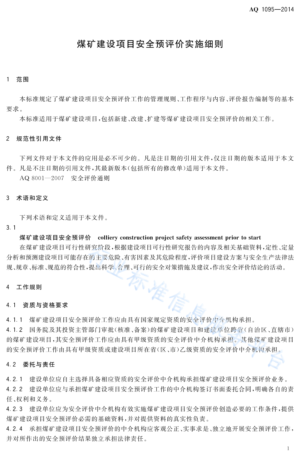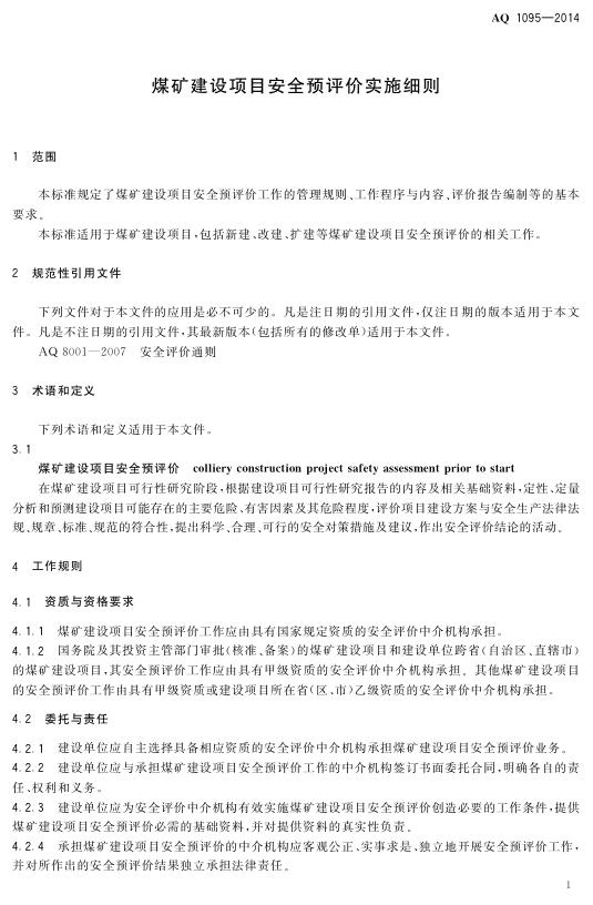 AQ/T 1095-2014 煤矿建设项目安全预评价实施细则