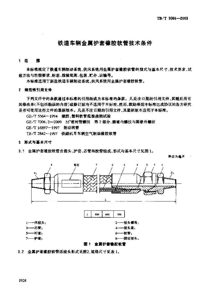 TB/T 3086-2003 铁道车辆金属护套橡胶软管技术条件