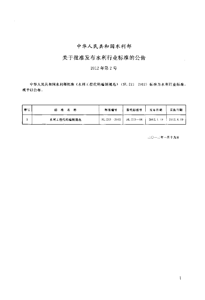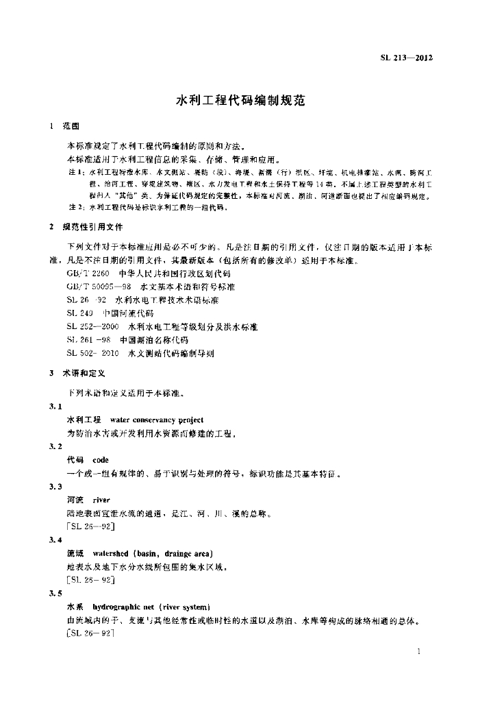SL 213-2012 水利工程代码编制规范