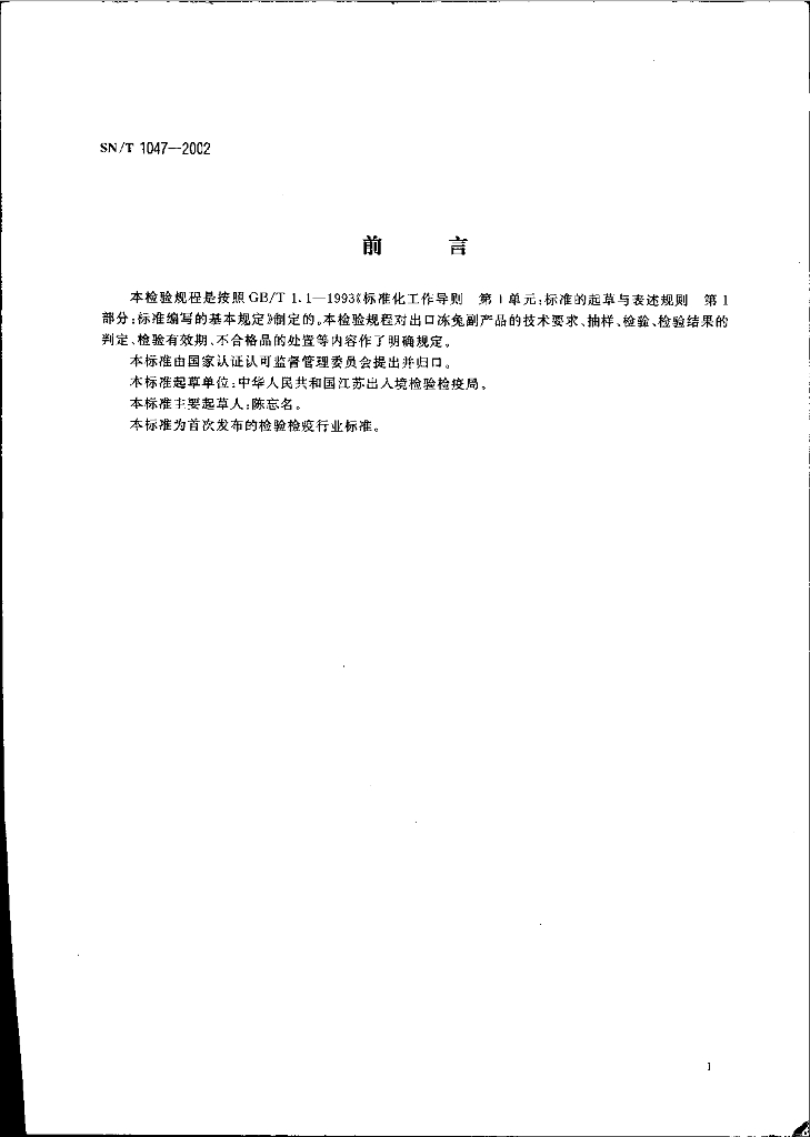 SN/T 1047-2002 出口冻兔副产品检验规程